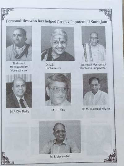 Sri T. T. Vasu, Sri S. Viswanathan, Dr. Balamurali Krishna, Sri Mannargudi Sambasiva Bhagavathar, Dr. Nalli Kuppusamy Chetti